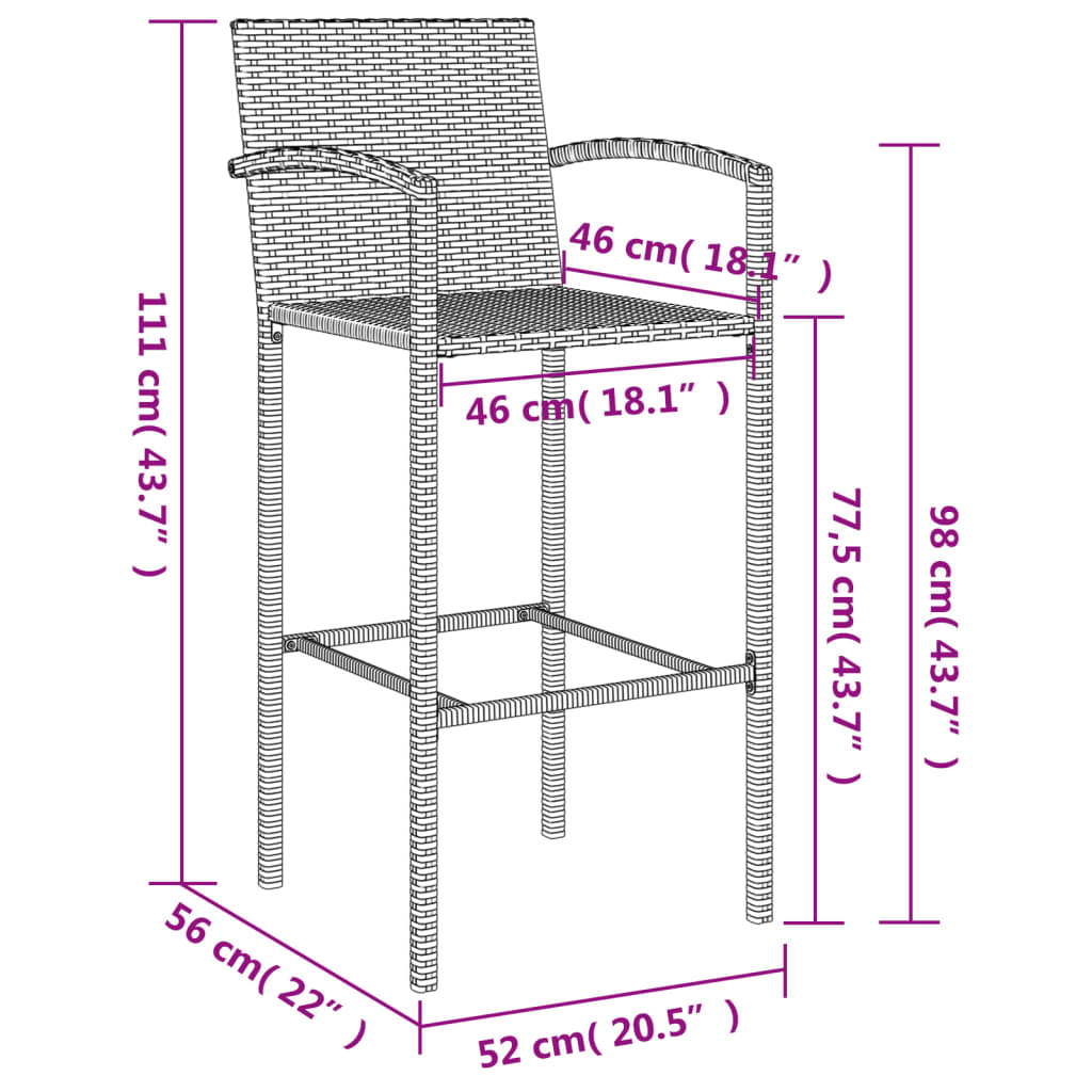 This trendy garden bar set, combining both style and function, is surely meant to be the centrepiece of your garden, patio, and any other living space. Weather-resistant material: PE rattan, also known as poly rattan, is weather resistant and easy to clean. It remains beautiful on the outside for a long period of time. It offers great quality, convenience and an aesthetic look.Comfortable seating: The bar stool is designed with armrests, a backrest, and a built-in footrest to offer you a comfortable seating experience.Tempered glass tabletop: The tabletop is made of tempered glass, making it easy to clean. Additionally, it offers excellent support for holding your drinks, snacks, and your favourite decorations.Sturdy and stable frame: The powder-coated steel frames make the pub set sturdy and stable for daily outdoor use.Wide applications: The bar table and stool, with its remarkable design, creates a pleasant overall appearance that integrates effortlessly into any environment. Good to know:To make assembly as easy as possible, each product is delivered with a manual.Note:To make sure your outdoor furniture stays beautiful, we recommend protecting it with a waterproof cover.