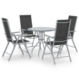 This practical yet stylish garden dining set is perfect for relaxing or dining in your garden or patio. The powder-coated aluminium frame makes the furniture set very sturdy and durable. The garden chairs have soft-to-touch textilene seats and backrests, adjustable in 7 positions, so you can always find the most comfortable seating position. The armchairs can be folded to save space when not in use. The table features a glass tabletop, which is easy to clean and suitable for outdoor use. Note: In order to extend the life of your outdoor furniture, we recommend you to clean it regularly and do not leave it outdoors without protection unnecessarily.Clean: Use a mild soap solutionStoring: If possible, store in a cool, dry place indoors. If the product is stored outdoors, protect it with a waterproof cover. Wipe and dry the excess water or snow from flat surfaces after a rain or snowfall. Allow sufficient air circulation to avoid moisture-related damage.