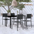 This garden dining set is a perfect combination of style and functionality and is meant to be the focal point of your garden, balcony or patio. This patio furniture set is made of powder-coated steel frame, which makes it sturdy and stable for daily outdoor use. The smooth glass tabletop is easy to clean with a damp cloth and perfect for placing meals, drinks and other decorative items. The lightweight outdoor dinner chairs are made of plastic, making them easy to clean and move around. The garden dining chairs, featuring the rattan look design, add a touch of natural charm to your outdoor living space! Note: In order to extend the life of your outdoor furniture, we recommend you to clean it regularly and do not leave it outdoors without protection unnecessarily.Clean: Use a mild soap solution.Storing: If possible, store in a cool, dry place indoors. If the product is stored outdoors, protect it with a waterproof cover. Wipe and dry the excess water or snow from flat surfaces after a rain or snowfall. Allow sufficient air circulation to avoid moisture-related damage.