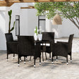 Enjoy a nice meal or afternoon tea in your outdoor space with this garden dining set! Featuring an elegant design, it will become the focal point of your garden and patio! Featuring a powder-coated steel frame wrapped with poly rattan, the outdoor dining set is durable. The tabletop is made of tempered glass, making it easy to clean. Additionally, the thickly padded cushions provide ultimate comfort during your sitting time. Note: In order to extend the life of your outdoor furniture, we recommend you to clean it regularly and do not leave it outdoors without protection unnecessarily.Clean: Use a mild soap solution.Storing: If possible, store in a cool, dry place indoors. If the product is stored outdoors, protect it with a waterproof cover. Wipe and dry the excess water or snow from flat surfaces after a rain or snowfall. Allow sufficient air circulation to avoid moisture-related damage.