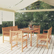 This wooden garden dining set, with an elegant and contemporary design, is a great choice for dining or relaxing in the garden. Solid teak wood: Solid teak wood is a beautiful natural material. It has been seasoned, kiln dried and then fine sanded to give a very smooth appearance. Teak wood is known for its exceptional strength and weather resistance.Sturdy tabletop: This dinner table provides you with a sturdy tabletop. You can place your snacks, drinks, and any of your favourite decorations.Water-resistant feature: With its water-resistant feature and classic look, you can place the garden furniture set anywhere around your sweet home, whether indoors or outdoors!Comfortable seating experience: Each bench and dinner chair has a backrest and armrests, which makes it highly comfortable to sit on. Note:Each product comes with an assembly manual in the box for easy assembly.In order to extend the life of your outdoor furniture, we recommend you to protect it with a waterproof cover.