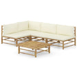 Create a relaxing lounge area with this bamboo garden lounge set. This garden lounge set is made of bamboo, making it sturdy and easy to clean. The thickly padded cushions add extra comfort in your lounging time. The cushion covers are removable and washable with zips. With a lightweight construction, this outdoor lounge set is easy to move around. Thanks to the modular design, you can place the set in any arrangement as per your preference. Note: In order to extend the life of your outdoor furniture, we recommend you to clean it regularly and do not leave it outdoors without protection unnecessarily.Clean: Use a mild soap solutionStoring: If possible, store in a cool, dry place indoors. If the product is stored outdoors, protect it with a waterproof cover. Wipe and dry the excess water or snow from flat surfaces after a rain or snowfall. Allow sufficient air circulation to avoid moisture-related damage. Note: In order to extend the life of your outdoor furniture, we recommend you to clean it regularly and do not leave it outdoors without protection unnecessarily.Clean: Use a mild soap solution.Storing: If possible, store in a cool, dry place indoors. If the product is stored outdoors, protect it with a waterproof cover. Wipe and dry the excess water or snow from flat surfaces after a rain or snowfall. Allow sufficient air circulation to avoid moisture-related damage.