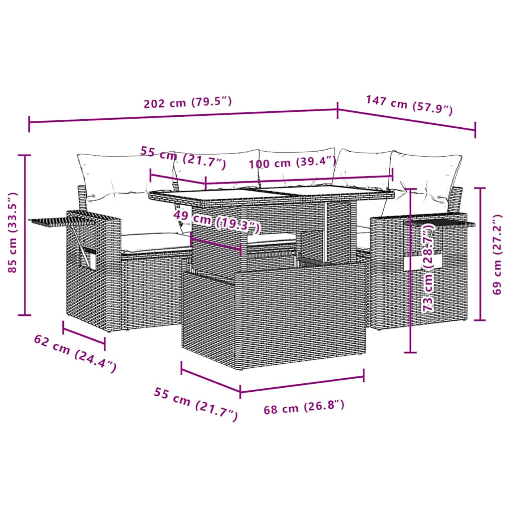This garden sofa set is the perfect addition to your backyard, terrace, or patio, providing a comfortable and inviting space for chatting with family and friends or simply relaxing and enjoying the outdoors. Durable material: PE rattan, also known as poly rattan, is a strong, low-maintenance synthetic material that looks like natural rattan. It's lightweight, easy to clean, and commonly used for outdoor furniture due to its durability and weather-resistant properties.Adjustable tabletop: The tabletop can be lifted to make the table higher, which transforms the outdoor table from a coffee table to a dining table. It's perfect for having guests over or eating meals outside.Convenient side table: This outdoor furniture features foldable side tables with a gas spring on the armrests, providing convenient spots to keep your essentials within easy reach. Comfortable seat experience: This outdoor furniture, complete with thickly padded cushions, offers a comfortable seating experience.Modular design: This outdoor furniture set has a modular design, making it completely flexible and easy to move around, so you can create a customised outdoor furniture arrangement. Good to know:To make sure your outdoor furniture stays beautiful, we recommend protecting it with a waterproof cover.
