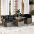 This garden sofa set is the perfect addition to your backyard, terrace, or patio, providing a comfortable and inviting space for chatting with family and friends or simply relaxing and enjoying the outdoors. Durable material: PE rattan, also known as poly rattan, is a strong, low-maintenance synthetic material that looks like natural rattan. It's lightweight, easy to clean, and commonly used for outdoor furniture due to its durability and weather-resistant properties.Storage function with water-resistant bag: Each garden seat features a storage space under the seat, complete with a water-resistant bag for storing cushions, toys, and other items. The inner bag has a top cover and can be securely fastened to the seat with hook-and-loop fasteners for added stability.Adjustable tabletop: The tabletop can be lifted to make the table higher, which transforms the outdoor table from a coffee table to a dining table. It's perfect for having guests over or eating meals outside.Versatile footstool: The stool is versatile, serving as a comfortable footrest for when you're lounging on the sofa or as an extra seat in your garden.Removable and washable cover: These seat cushions feature removable covers for easy washing and maintenance.Robust and stable frame: The powder-coated steel frame is strong, stable, durable, and resistant to corrosion and harsh weather, ensuring long-lasting performance. Good to know:To make sure your outdoor furniture stays beautiful, we recommend protecting it with a waterproof cover.