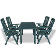 This weather-resistant outdoor dining set will be a great choice for al fresco dining in the garden, on the patio or at the campsite. The garden table has an umbrella hole so that you can use it with an umbrella and keep cool in the shade. The chairs' backrests have 4 reclining settings, so you can always find the most comfortable position. The chairs can be folded to save space when not in use. The set is made of durable plastic, making the table and chairs weather resistant and easy to clean. This outdoor dining set is also lightweight, which makes it easy to move around. Delivery includes 1 table and 4 folding chairs.