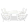 This weather-resistant outdoor dining set will be a great choice for al fresco dining in the garden, on the patio or at the campsite. The garden table has an umbrella hole so that you can use it with an umbrella and keep cool in the shade. The chairs' backrests have 4 reclining settings, so you can always find the most comfortable position. The chairs can be folded to save space when not in use. The set is made of durable plastic, making the table and chairs weather resistant and easy to clean. This outdoor dining set is also lightweight, which makes it easy to move around. Delivery includes 1 table and 4 folding chairs.