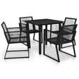This outdoor dining set contains 1 table with glass top and 4 armchairs. Our dining furniture set with stylish design and a durable steel frame makes it a perfect choice for your outdoor living space. The simplistic elegance of this dining set will make your everyday dinners special. As the furniture set is made of PVC rattan, it is weather-resistant. Additionally, this garden dining set features a powder-coated steel frame, which makes the table and chairs stable and durable.