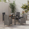 With a stylish design and a durable steel frame, this dining furniture set is a perfect choice for your outdoor living space. This garden dining set features a powder-coated steel frame, which makes the table and chairs stable and durable. Thanks to the weather-resistant PE rattan, the outdoor furniture set is easy to clean. The cushions are removable that is easy to clean. Additionally, the thickly cushions add extra seating comfort. Note: In order to extend the life of your outdoor furniture, we recommend you to clean it regularly and do not leave it outdoors without protection unnecessarily.Clean: Use a mild soap solution.Storing: If possible, store in a cool, dry place indoors. If the product is stored outdoors, protect it with a waterproof cover. Wipe and dry the excess water or snow from flat surfaces after a rain or snowfall. Allow sufficient air circulation to avoid moisture-related damage.