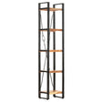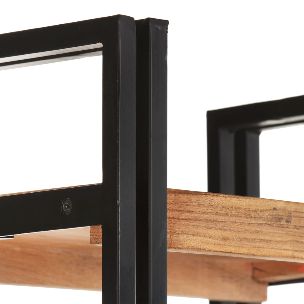 Add a touch of industrial style to your home or office with this 5-tier wooden bookcase. This bookshelf offers an ideal solution for storing and displaying your book collection, magazines, documents, or decorative items like photo frames and collectibles. The bookcase features a sturdy powder-coated steel frame which gives it an industrial look. The bookcase is made of solid acacia wood, a tropical hardwood with beautiful grains, which is weather-resistant and durable. Every step of the process is carried out with the greatest care, be it polishing, painting or lacquering. The craftsmanship and the eye-catching wood grains make every piece of furniture distinctive and slightly different from the next. Important note: Colours and wood grain vary from piece to piece, making each of display shelves unique. The delivery is random, ensuring the exclusivity and individuality of your product.