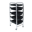 This Salon Trolley has 4 removable drawers and a top segmented tray fit for holding a tint bowl, hairdryer and other hairdressing accessories. Standing on 4 wheels, it can be easily moved and the drawers are easily cleaned. A simple cart with plenty of storage space for any salon, barber or home.