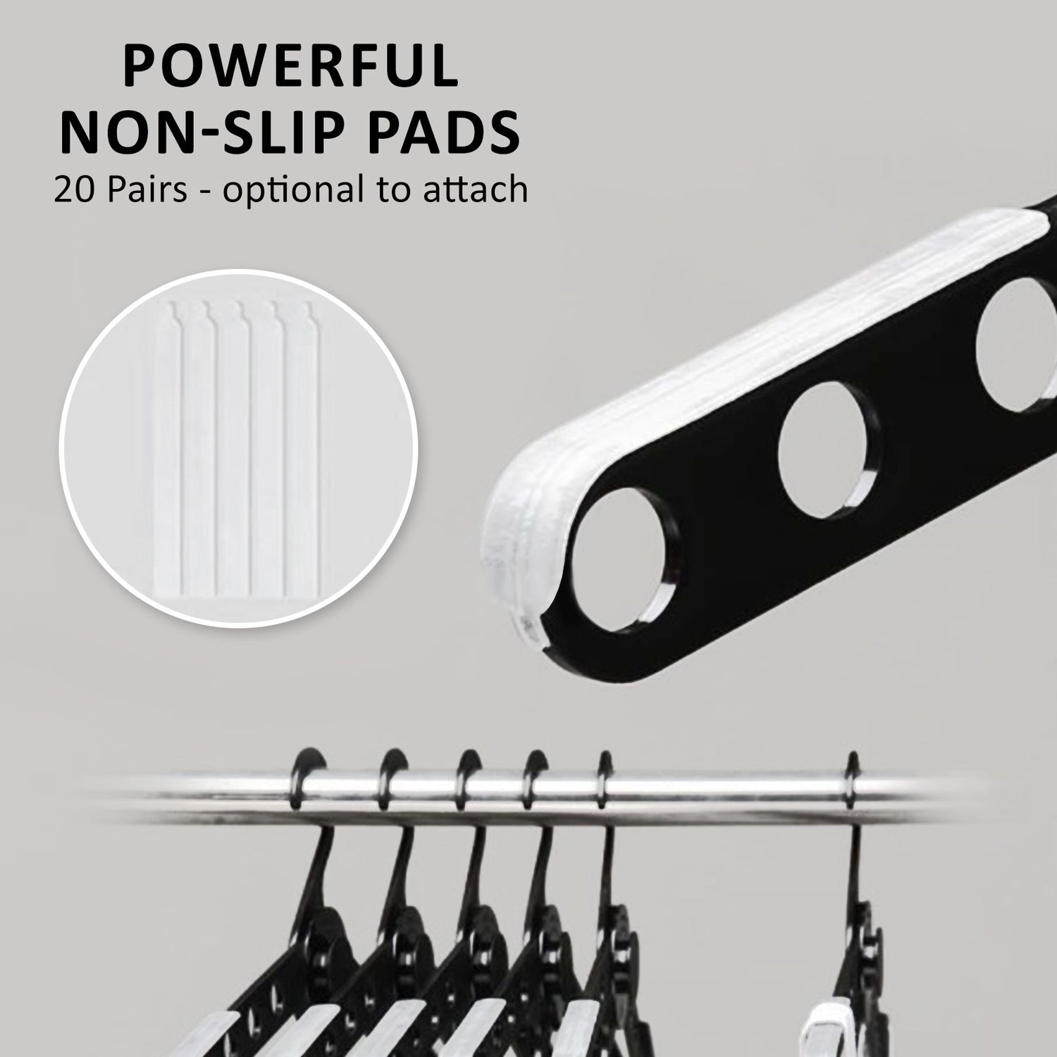 MULTIPLE HANGING DESIGN and ANTI-SLIP: Hang up to 10 additional hangers on the wings when expanded or folded for saving more space. The value pack also includes 40 pieces of anti-slip pads (optional to attach) for 20 hangers to prevent slipping of mounted clothing.