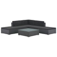 This poly rattan sofa set, consisting of 1 corner sofas, 2 centre sofas, 1 coffee table, 2 ottomans, 4 back cushions and 5 seat cushions, will offer a stylish seating area for your garden or patio. Thanks to the weather-resistant PE rattan, the patio sofa set is easy to clean, hard-wearing and suitable for daily outdoor use. The powder-coated steel frames make the set sturdy and stable. The set is lightweight and the modular sections can be easily combined into different configurations. This set is also delivered with the highly comfortable, thickly-padded seat cushions and back cushions for the ultimate comfort. The low-maintenance polyester cover can also be removed and washed. This set needs assembly. Note: We recommend covering the set during rain, snow and frost for its best service to last.