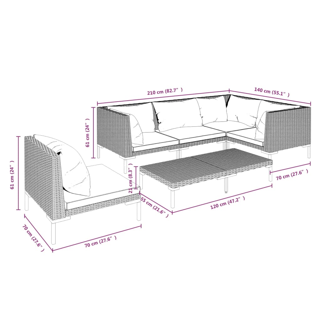 - Rattan colour: Dark grey
