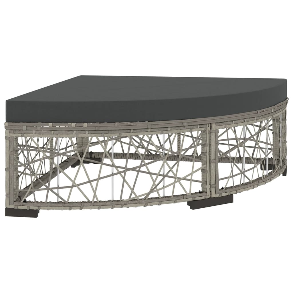 This rattan lounge set is a perfect combination of style and functionality. It will be the focal point of your garden or patio. The rattan lounge set is designed to be used outdoors year around. Thanks to the weather-resistant and waterproof PE rattan, the lounge set is easy to clean and is hard wearing and suitable for daily use. The seat features a sturdy, powder-coated steel frame and plastic feet. It is also light weight, making it easy to move around. The thick removable seat and back cushions with vertical fiber cotton filling offer ultimate seating comfort. The easy-to-clean polyester covers with concealed zippers can be removed and washed. The modular rattan lounge is very flexible and can be easily moved around to suit any setting! Delivery includes 1 x corner seating, 2 x middle seating, 2 x stool, 1 x fan shape footrest, 6 x seat cushions, and 4 x back cushions. Note: We recommend covering the set in the rain, snow and frost.