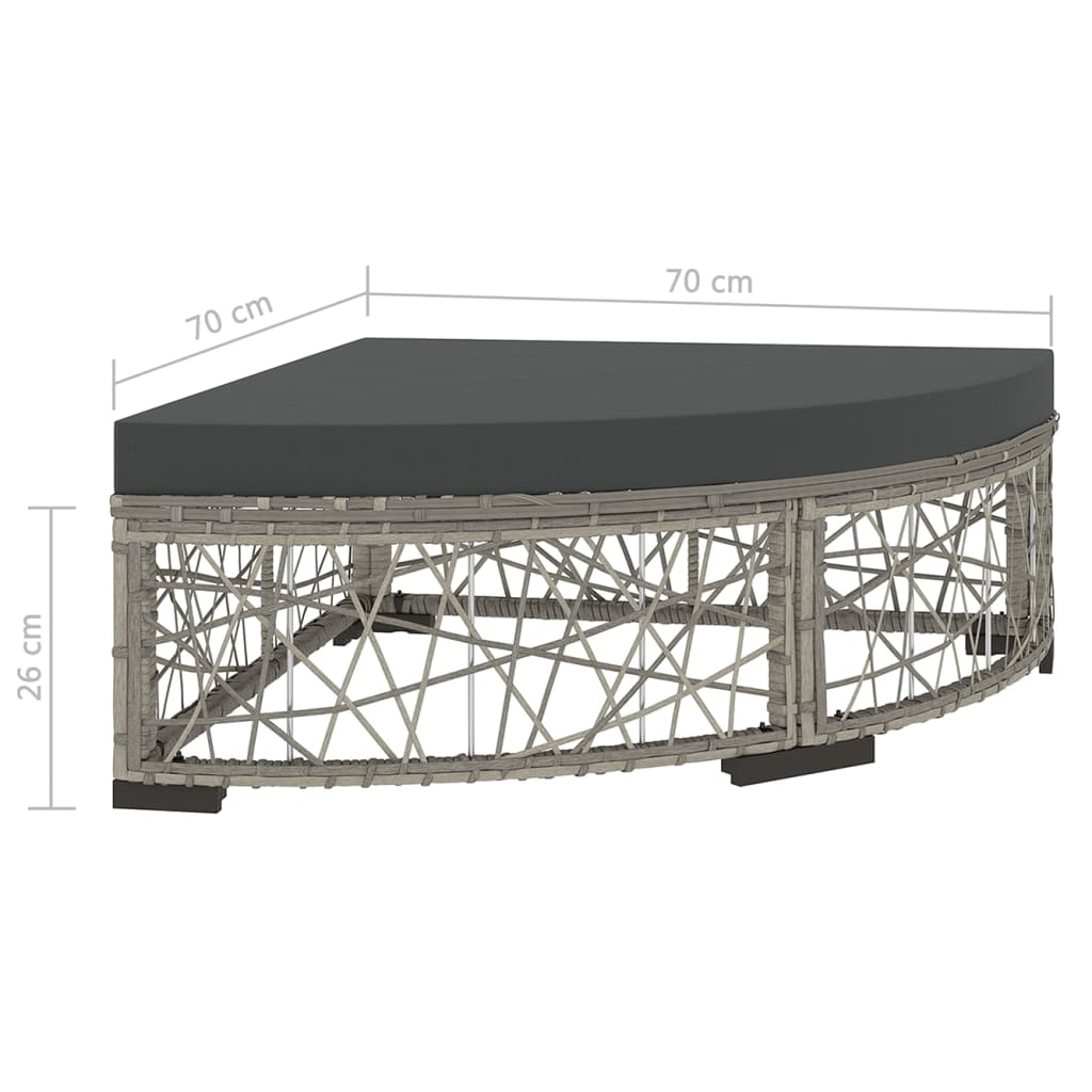 - Fan-shaped footrest dimensions: 70 x 70 x 26 cm (L x W x H)