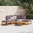 This wooden garden lounge set with cushions has an elegant design and is a great choice for relaxing and enjoying in the garden or patio. Solid acacia wood: Solid acacia wood is a beautiful natural material. Acacia wood is a tropical hardwood, which is dense, sturdy, and durable.Comfortable seat experience: The backrest and the thickly-padded cushions make the garden sofa set more comfortable to sit on.Slatted design: The slatted design of the wooden lounge set effectively prevents water from pooling, ensuring that the seat remains dry and free from potential rot.Modular design: This outdoor furniture set has a modular design, making it completely flexible and easy to move around, so you can create a customised outdoor furniture arrangement. Good to know:To make sure your outdoor furniture stays beautiful, we recommend protecting it with a waterproof cover.