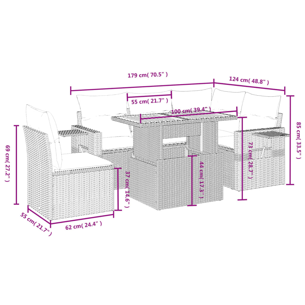 This garden sofa set is the perfect addition to your backyard, terrace, or patio, providing a comfortable and inviting space for chatting with family and friends or simply relaxing and enjoying the outdoors. Durable material: PE rattan, also known as poly rattan, is a strong, low-maintenance synthetic material that looks like natural rattan. It's lightweight, easy to clean, and commonly used for outdoor furniture due to its durability and weather-resistant properties.Adjustable tabletop: The tabletop can be lifted up to make the table higher, which transforms the outdoor table from a coffee table to a dining table. It's perfect for having guests over or eating meals outside.Convenient side table: This outdoor furniture features a foldable side table with a gas spring on the armrests, providing a convenient spot to keep your essentials within easy reach.Removable and washable cover: These seat cushions feature removable covers for easy washing and maintenance.Modular design: This outdoor furniture set has a modular design, making it completely flexible and easy to move around, so you can create a customised outdoor furniture arrangement. Good to know:To make sure your outdoor furniture stays beautiful, we recommend protecting it with a waterproof cover.