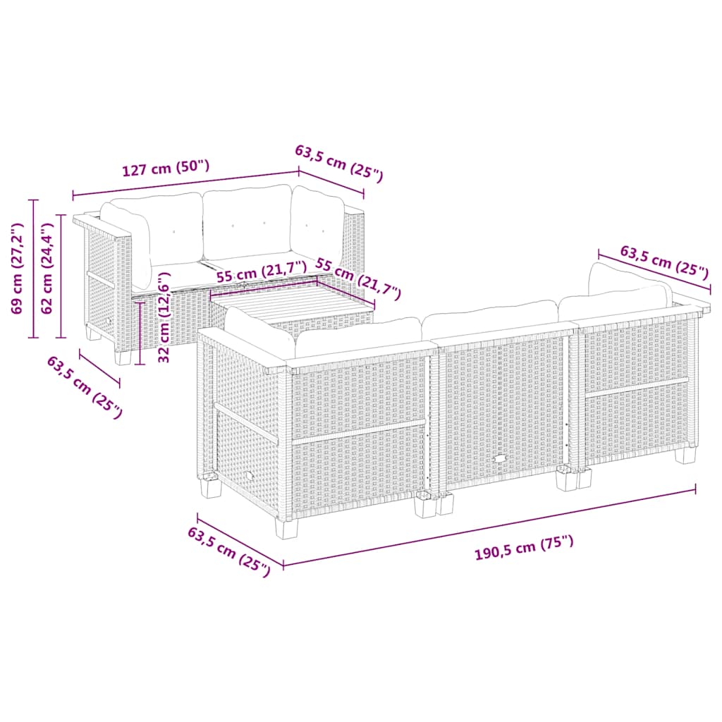 This garden sofa set is the perfect addition to your backyard, terrace, or patio, providing a comfortable and inviting space for chatting with family and friends or simply relaxing and enjoying the outdoors. Durable material: PE rattan, also known as poly rattan, is a strong, low-maintenance synthetic material that looks like natural rattan. It's lightweight, easy to clean, and commonly used for outdoor furniture due to its durability and weather-resistant properties.Comfortable seat experience: This outdoor furniture, complete with thickly padded cushions, offers a comfortable seating experience.Removable and washable cover: These seat cushions feature removable covers for easy washing and maintenance.Stable and easy-to-clean tabletop: This garden table has an acacia wood top that is sturdy, durable, and easy to clean with a damp cloth.Modular design: This outdoor furniture set has a modular design, making it completely flexible and easy to move around, so you can create a customised outdoor furniture arrangement. Good to know:To make sure your outdoor furniture stays beautiful, we recommend protecting it with a waterproof cover.