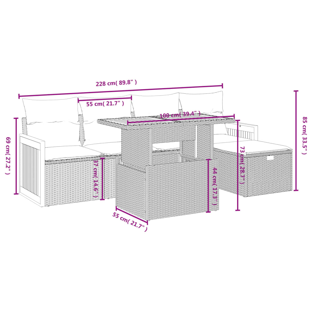 This garden sofa set is the perfect addition to your backyard, terrace, or patio, providing a comfortable and inviting space for chatting with family and friends or simply relaxing and enjoying the outdoors. Durable material: PE rattan, also known as poly rattan, is a strong, low-maintenance synthetic material that looks like natural rattan. It's lightweight, easy to clean, and commonly used for outdoor furniture due to its durability and weather-resistant properties.Adjustable tabletop: The tabletop can be lifted up to make the table higher, which transforms the outdoor table from a coffee table to a dining table. It's perfect for having guests over or eating meals outside.Removable and washable cover: These seat cushions feature removable covers for easy washing and maintenance.Modular design: This outdoor furniture set has a modular design, making it completely flexible and easy to move around, so you can create a customised outdoor furniture arrangement. Good to know:To make sure your outdoor furniture stays beautiful, we recommend protecting it with a waterproof cover.