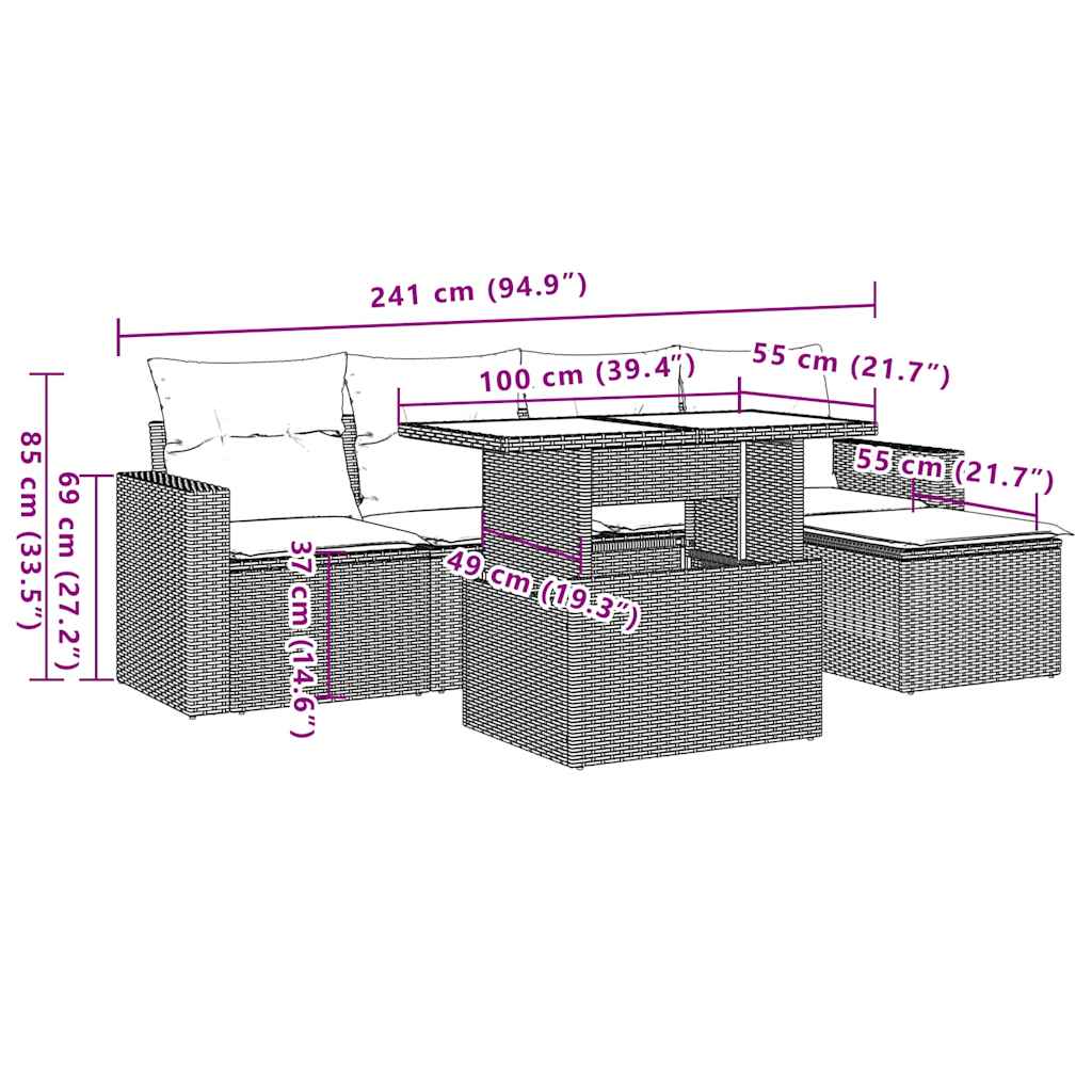 This garden sofa set is the perfect addition to your backyard, terrace, or patio, providing a comfortable and inviting space for chatting with family and friends or simply relaxing and enjoying the outdoors. Durable material: PE rattan, also known as poly rattan, is a strong, low-maintenance synthetic material that looks like natural rattan. It's lightweight, easy to clean, and commonly used for outdoor furniture due to its durability and weather-resistant properties.Adjustable tabletop: The tabletop can be lifted to make the table higher, which transforms the outdoor table from a coffee table to a dining table. It's perfect for having guests over or eating meals outside.Comfortable seat experience: This outdoor furniture, complete with thickly padded cushions, offers a comfortable seating experience.Removable and washable cover: These seat cushions feature removable covers for easy washing and maintenance.Modular design: This outdoor furniture set has a modular design, making it completely flexible and easy to move around, so you can create a customised outdoor furniture arrangement. Good to know:To make sure your outdoor furniture stays beautiful, we recommend protecting it with a waterproof cover.
