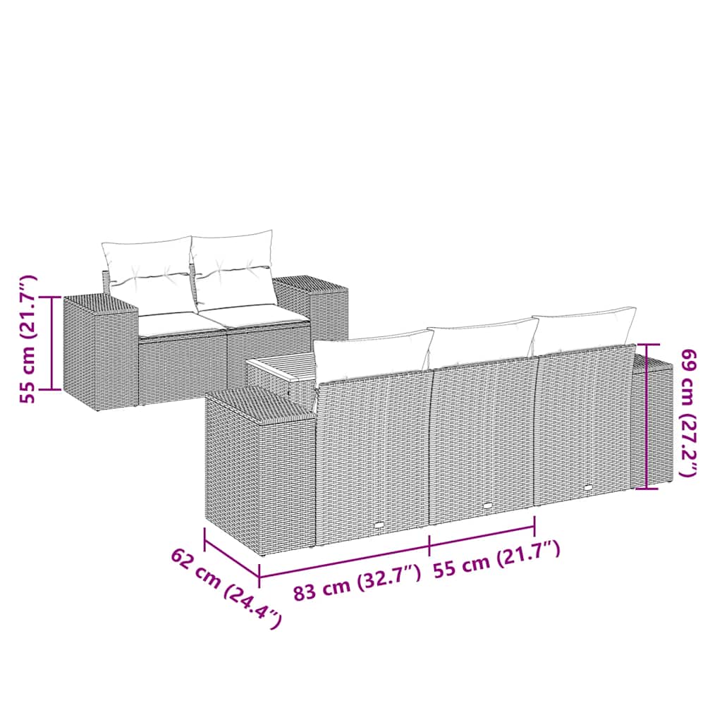 This garden sofa set is the perfect addition to your backyard, terrace, or patio, providing a comfortable and inviting space for chatting with family and friends or simply relaxing and enjoying the outdoors. Durable material: PE rattan, also known as poly rattan, is a strong, low-maintenance synthetic material that looks like natural rattan. It's lightweight, easy to clean, and commonly used for outdoor furniture due to its durability and weather-resistant properties. Storage function with water-resistant bag: Each garden seat features storage space under the seat, complete with a water-resistant bag for storing cushions, toys, and other items. The inner bags have a top cover and can be securely fastened to the seats with hook-and-loop fasteners for added stability. Stable and easy-to-clean tabletop: This garden table has an acacia wood top that is sturdy, durable, and easy to clean with a damp cloth. Comfortable seat experience: This outdoor furniture, complete with thickly padded cushions, offers a comfortable seating experience. Modular design: This outdoor furniture set has a modular design, making it completely flexible and easy to move around, so you can create a customised outdoor furniture arrangement. Good to know:To make sure your outdoor furniture stays beautiful, we recommend protecting it with a waterproof cover.