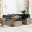 This garden sofa set is the perfect addition to your backyard, terrace, or patio, providing a comfortable and inviting space for chatting with family and friends or simply relaxing and enjoying the outdoors. Durable material: PE rattan, also known as poly rattan, is a strong, low-maintenance synthetic material that looks like natural rattan. It's lightweight, easy to clean, and commonly used for outdoor furniture due to its durability and weather-resistant properties.Storage function with water-resistant bag: The garden furniture features storage space under the seat, complete with a water-resistant bag for storing cushions, toys, and other items. The inner bag can be securely fastened to the outdoor furniture with hook-and-loop fasteners for added stability.Adjustable tabletop: The tabletop can be lifted to make the table higher, which transforms the outdoor table from a coffee table to a dining table. It's perfect for having guests over or eating meals outside.Removable and washable cover: These seat cushions feature removable covers for easy washing and maintenance.Modular design: This outdoor furniture set has a modular design, making it completely flexible and easy to move around, so you can create a customised outdoor furniture arrangement. Good to know:To make sure your outdoor furniture stays beautiful, we recommend protecting it with a waterproof cover.