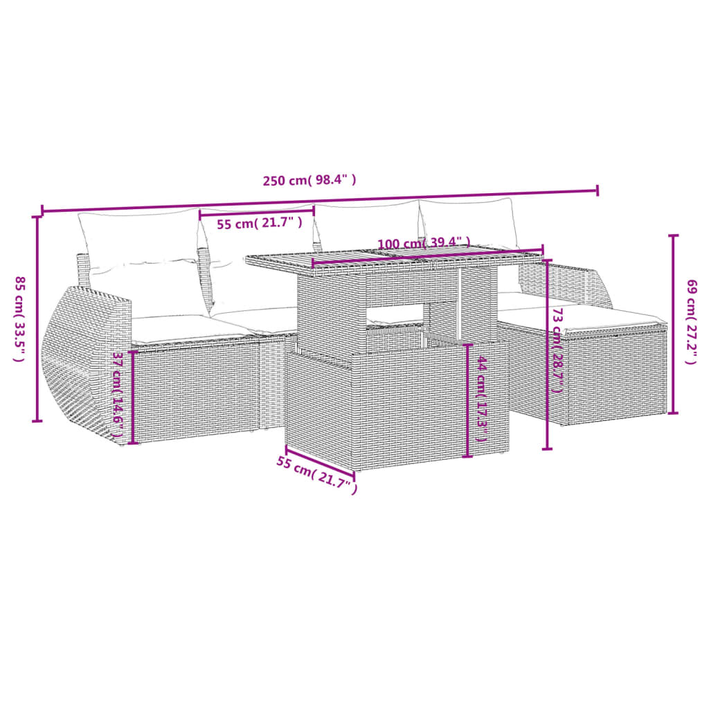 This garden sofa set is the perfect addition to your backyard, terrace, or patio, providing a comfortable and inviting space for chatting with family and friends or simply relaxing and enjoying the outdoors. Durable material: PE rattan, also known as poly rattan, is a strong, low-maintenance synthetic material that looks like natural rattan. It's lightweight, easy to clean, and commonly used for outdoor furniture due to its durability and weather-resistant properties.Adjustable tabletop: The tabletop can be lifted up to make the table higher, which transforms the outdoor table from a coffee table to a dining table. It's perfect for having guests over or eating meals outside.Removable and washable cover: These seat cushions feature removable covers for easy washing and maintenance.Modular design: This outdoor furniture set has a modular design, making it completely flexible and easy to move around, so you can create a customised outdoor furniture arrangement. Good to know:To make sure your outdoor furniture stays beautiful, we recommend protecting it with a waterproof cover.