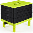 the worm composter bin is made of quality plastic material, sturdy and reliable, worm composter box can be applied indoor and outdoors because of its light and weather resistance, the constructed hinged lid stays closed even in strong winds.