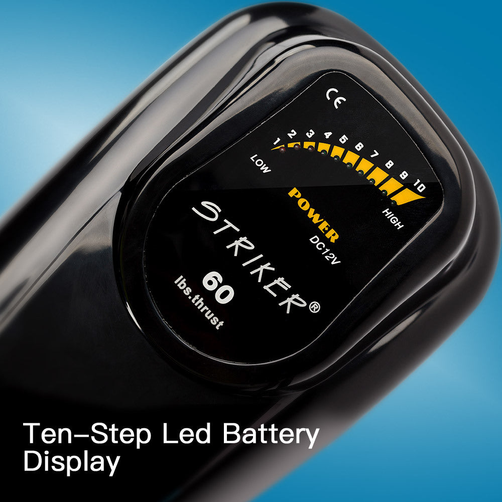 With super-low power consumption, the Genuine Striker gets the most out of your 12V battery. And thanks to its clear LED display, you will always be in control of the power. Suitable for small water crafts such as inflatable boats, canoes and aluminum fishing boats, refer to the below graph for boat size.Simply twist the handle and sneak up on the fish at the optimal speed. With five forward speeds and three reverse speeds, you'll make the right approach every time.