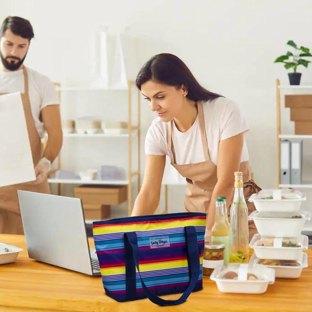 - KEEPS ICE FOR HOURS: Our kitchen reusable grocery bags can be used to help carry groceries or for food delivery - Thick Thermal Foam Insulation keeps groceries cold and food warm - the ideal carrier for picnics, potlucks and dinner parties. Perfect for frozen groceries, cold beverages, or hot takeout orders. Tested to keep ice frozen for 8+ hours when zipped.
