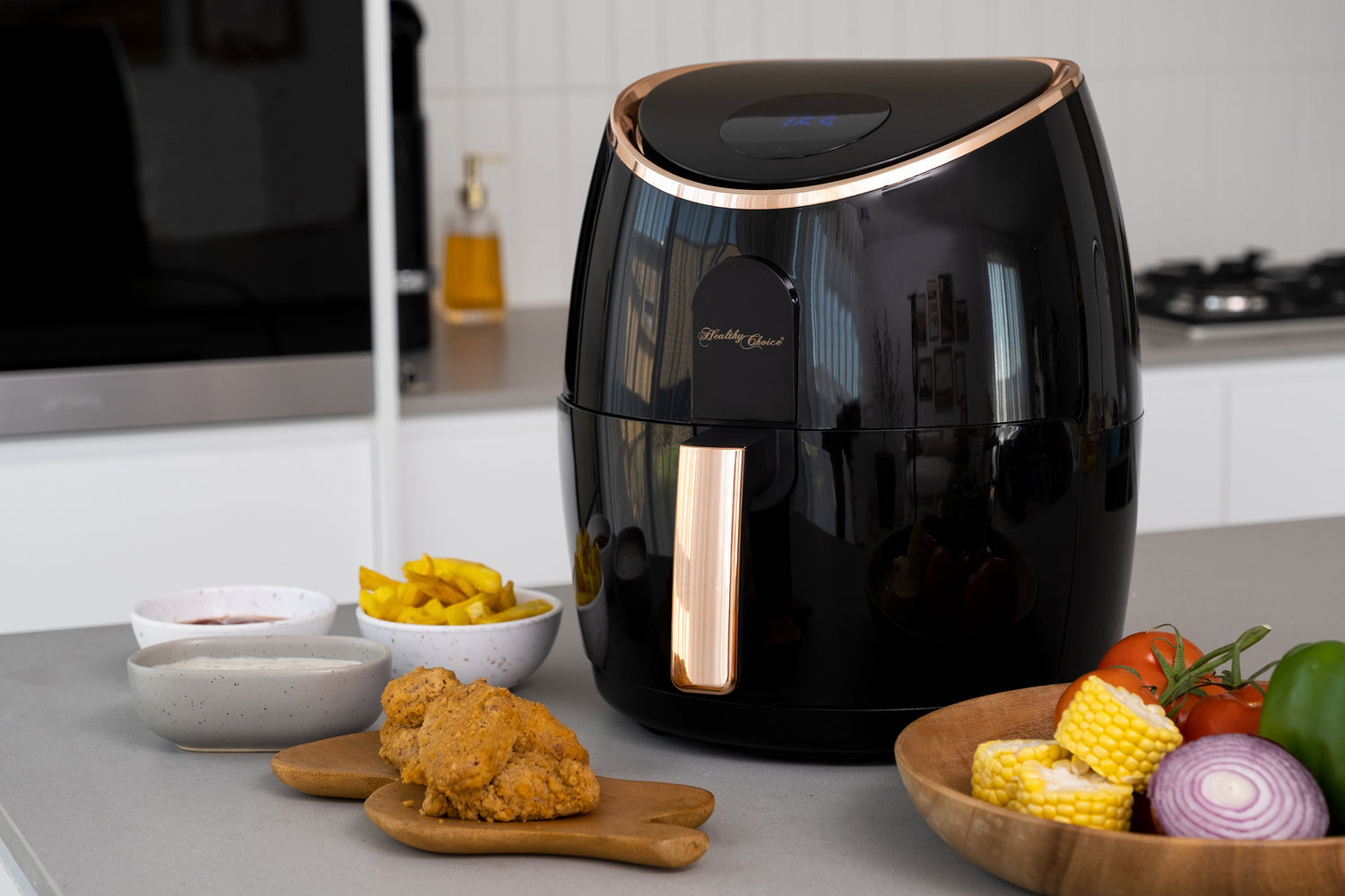 The Healthy Choice 7.1L Digital Air Fryer Kitchen Appliance in a sleek Black/Rose Gold color combination is a versatile and stylish addition to your culinary arsenal. With a spacious 7.1-liter capacity, this air fryer allows you to prepare larger quantities of your favorite foods with ease. Its digital control panel offers intuitive settings for precise temperature and time adjustments, making it simple to achieve optimal cooking results. With its advanced air circulation technology, you can enjoy crispy, flavorful dishes using little to no oil. The elegant Black/Rose Gold design adds a touch of sophistication to your kitchen decor, while the removable non-stick components ensure effortless cleaning. Elevate your cooking experience with the Healthy Choice 7.1L Digital Air Fryer Kitchen Appliance and enjoy healthier, delicious meals in style.