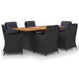 This garden dining set with an elegant design makes a great choice for dining or relaxing in the garden or on the patio! The outdoor furniture set features a sturdy powder-coated steel frame which makes it very stable and durable. Thanks to the weather-resistant PE rattan, the dining set is easy to clean, hardwearing as well as suitable for daily outdoor use. The tabletop is made of solid acacia wood, making it of high sturdiness. Moreover, the included soft seat cushions also add the set's extra comfort. The low-maintenance polyester cushion covers can be easily removed and washed. Note: We recommend covering the set in the rain, snow and frost.