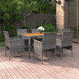 This garden dining set, featuring an elegant design, is an excellent choice for your dining or lounging on your patio or garden. Strong frame: Featuring a powder-coated steel frame covered with weather-resistant PE rattan with UV protection, the table and chairs are durable and stable.Comfortable chairs: The garden chairs are designed in a more ergonomic shape for maximum comfort. Cushions are included for added support.Practical table: The tabletop is made of solid acacia wood in strong support, easy to clean and maintain. Note:In order to extend the life of your outdoor furniture, we recommend you to clean it regularly and do not leave it outdoors without protection unnecessarily.Clean: Use a mild soap solution.Storing: If possible, store in a cool, dry place indoors. If the product is stored outdoors, protect it with a waterproof cover. Wipe and dry the excess water or snow from flat surfaces after a rain or snowfall. Allow sufficient air circulation to avoid moisture-related damage.