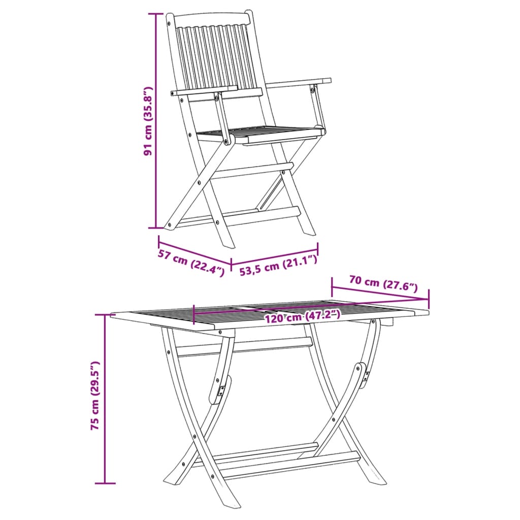 Enjoy a nice meal or afternoon tea in your outdoor space with this wooden garden dining set! Durable material: Solid eucalyptus wood is a beautiful natural material. Eucalyptus wood is extremely dense and water repellent. The material is well-known for its rich reddish-brown colour.Slatted design: The slatted design of the patio dining set prevents water accumulation, keeping the seat dry and preventing unnecessary rotting.Sturdy tabletop: The outdoor table offers excellent support for holding your drinks, snacks, fruit baskets, and your favourite decorations.Foldable design: The outdoor dining table and chairs can be easily folded away when not in use, for easy storage and transportation.Comfortable seating experience: Featuring a backrest, the outdoor chair gives you the utmost comfort. Good to know:To make sure your outdoor furniture stays beautiful, we recommend protecting it with a waterproof cover.