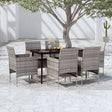 This garden dining set is a great choice for dining or relaxing in the outdoor space! The powder-coated steel frames make the table and chairs sturdy and stable for daily outdoor use. Thanks to the water-resistant PE rattan, the chairs are easy to clean and suitable for daily use. The smooth glass tabletop is easy to clean with a damp cloth and perfect for placing meals, drinks and other decorative items. Note: In order to extend the life of your outdoor furniture, we recommend you to clean it regularly and do not leave it outdoors without protection unnecessarily.Clean: Use a mild soap solution.Storing: If possible, store in a cool, dry place indoors. If the product is stored outdoors, protect it with a waterproof cover. Wipe and dry the excess water or snow from flat surfaces after a rain or snowfall. Allow sufficient air circulation to avoid moisture-related damage.