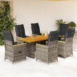This garden dining set is a great choice for al fresco dining or just relaxing in the garden, backyard, or on the patio. Durable material: PE rattan, also known as poly rattan, is a strong, low-maintenance synthetic material that looks like natural rattan. It's lightweight, easy to clean, and commonly used for outdoor furniture due to its durability and weather-resistant properties.Adjustable backrest: This garden seat has a handle. You can adjust the backrest to any position by pulling the handle, and quickly return it to its original position.Stable and easy-to-clean tabletop: This garden table has an acacia wood top that is sturdy, durable, and easy to clean with a damp cloth.Comfortable seat experience: This outdoor furniture set, complete with thickly padded cushions, offers a comfortable seating experience.Removable and washable cover: These seat cushions feature removable covers for easy washing and maintenance. The back cushions have a flap at the back for easy attachment to the backrests. Good to know:To make sure your outdoor furniture stays beautiful, we recommend protecting it with a waterproof cover.