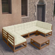 This pinewood garden lounge set is an ideal choice for you to relax and enjoy the weather, take a nap, or chat with your family or friends. The sofa set is made of solid pinewood, making it sturdy and stable. This set has a solid construction and requires little maintenance. The cushions add extra comfort. This lounge set will add a touch of rustic charm to your outdoor living space. Note: In order to extend the life of your outdoor furniture, we recommend you to clean it regularly and do not leave it outdoors without protection unnecessarily.Clean: Use a mild soap solution.Storing: If possible, store in a cool, dry place indoors. If the product is stored outdoors, protect it with a waterproof cover. Wipe and dry the excess water or snow from flat surfaces after a rain or snowfall. Allow sufficient air circulation to avoid moisture-related damage.