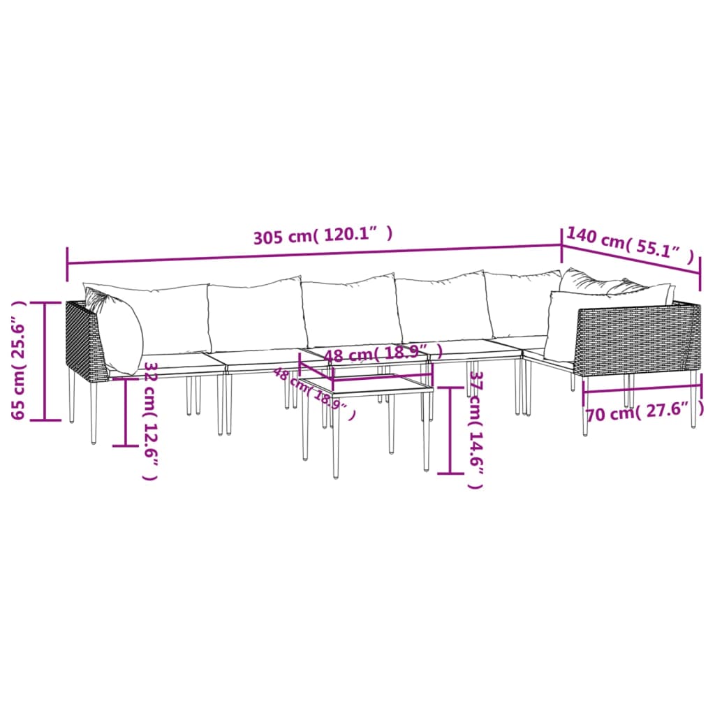 This trendy garden lounge set, featuring an elegant and contemporary design, is a great choice for relaxing in your garden. Durable material: PE rattan, also known as poly rattan, is weather resistant and easy to clean. It remains beautiful on the outside for a long period of time. It's more economical than other materials, while offering great quality, convenience and an aesthetic look.Sturdy and stable frame: The steel frames make the lounge set sturdy and stable for daily outdoor use.Comfortable seat experience: With the thickly padded seat and back cushions, the outdoor lounge set is highly comfortable.Practical table: The sturdy table is perfect for placing meals, drinks, and other decorative items.Modular design: Each piece is easy to move around, which makes it easy for you to create different layouts that fit your needs. You can also find single items in our webshop to arrange your own furniture patterns. Note:To make sure your outdoor furniture stays beautiful, we recommend protecting it with a waterproof cover.