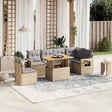 7 Piece Garden Sofa Set with Cushions Beige Poly Rattan