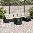 7 Piece Garden Sofa Set with Cushions Black Poly Rattan