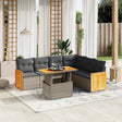 This garden sofa set is the perfect addition to your backyard, terrace, or patio, providing a comfortable and inviting space for chatting with family and friends or simply relaxing and enjoying the outdoors. Durable material: PE rattan, also known as poly rattan, is a strong, low-maintenance synthetic material that looks like natural rattan. It's lightweight, easy to clean, and commonly used for outdoor furniture due to its durability and weather-resistant properties.Adjustable tabletop: The tabletop can be lifted up to make the table higher, which transforms the outdoor table from a coffee table to a dining table. It's perfect for having guests over or eating meals outside.Removable and washable cover: These seat cushions feature removable covers for easy washing and maintenance.Modular design: This outdoor furniture set has a modular design, making it completely flexible and easy to move around, so you can create a customised outdoor furniture arrangement. Good to know:To make sure your outdoor furniture stays beautiful, we recommend protecting it with a waterproof cover.