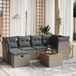 This garden sofa set is the perfect addition to your backyard, terrace, or patio, providing a comfortable and inviting space for chatting with family and friends or simply relaxing and enjoying the outdoors. Durable material: PE rattan, also known as poly rattan, is a strong, low-maintenance synthetic material that looks like natural rattan. It's lightweight, easy to clean, and commonly used for outdoor furniture due to its durability and weather-resistant properties.Stable and easy-to-clean tabletop: This garden table has an acacia wood top that is sturdy, durable, and easy to clean with a damp cloth.Removable and washable cover: These seat cushions feature removable covers for easy washing and maintenance.Robust and stable frame: The powder-coated steel frame ensures that the garden furniture is strong and stable for daily outdoor use.Modular design: This outdoor furniture set has a modular design, making it completely flexible and easy to move around, so you can create a customised outdoor furniture arrangement. Good to know:To make sure your outdoor furniture stays beautiful, we recommend protecting it with a waterproof cover.