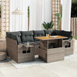 This garden sofa set is the perfect addition to your backyard, terrace, or patio, providing a comfortable and inviting space for chatting with family and friends or simply relaxing and enjoying the outdoors. Durable material: PE rattan, also known as poly rattan, is a strong, low-maintenance synthetic material that looks like natural rattan. It's lightweight, easy to clean, and commonly used for outdoor furniture due to its durability and weather-resistant properties.Storage function with water-resistant bag: The garden furniture features storage space under the seat, complete with a water-resistant bag for storing cushions, toys, and other items. The inner bag can be securely fastened to the outdoor furniture with hook-and-loop fasteners for added stability.Adjustable tabletop: The tabletop can be lifted to make the table higher, which transforms the outdoor table from a coffee table to a dining table. It's perfect for having guests over or eating meals outside.Removable and washable cover: These seat cushions feature removable covers for easy washing and maintenance.Modular design: This outdoor furniture set has a modular design, making it completely flexible and easy to move around, so you can create a customised outdoor furniture arrangement. Good to know:To make sure your outdoor furniture stays beautiful, we recommend protecting it with a waterproof cover.