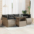 This garden sofa set is the perfect addition to your backyard, terrace, or patio, providing a comfortable and inviting space for chatting with family and friends or simply relaxing and enjoying the outdoors. Durable material: PE rattan, also known as poly rattan, is a strong, low-maintenance synthetic material that looks like natural rattan. It's lightweight, easy to clean, and commonly used for outdoor furniture due to its durability and weather-resistant properties.Storage function with water-resistant bag: Each garden seat features a storage space under the seat, complete with a water-resistant bag for storing cushions, toys, and other items. The inner bag has a top cover and can be securely fastened to the seat with hook-and-loop fasteners for added stability.Adjustable tabletop: The tabletop can be lifted to make the table higher, which transforms the outdoor table from a coffee table to a dining table. It's perfect for having guests over or eating meals outside.Removable and washable cover: These seat cushions feature removable covers for easy washing and maintenance.Robust and stable frame: The powder-coated steel frame is strong, stable, durable, and resistant to corrosion and harsh weather, ensuring long-lasting performance. Good to know:To make sure your outdoor furniture stays beautiful, we recommend protecting it with a waterproof cover.