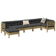 This garden sofa set is the perfect addition to your backyard, terrace, or patio, providing a comfortable and inviting space for chatting with family and friends or simply relaxing and enjoying the outdoors. Sturdy and durable material: Solid pinewood is known for its strength and durability. Its straight grains and distinctive knots contribute to its rustic charm. It has been impregnated with a preservative solution and undergone autoclave treatment, enhancing its resistance to decay and weathering.Comfortable seat experience: This outdoor furniture, complete with thickly padded cushions, offers a comfortable seating experience.Well-ventilated and pooling prevention: The slatted design promotes optimal airflow and effectively prevents water pooling, ensuring a dry and comfortable seat.Modular design: This outdoor furniture set has a modular design, making it completely flexible and easy to move around, so you can create a customised outdoor furniture arrangement. Good to know:To make sure your outdoor furniture stays beautiful, we recommend protecting it with a waterproof cover.