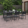 With a stylish design and a durable steel frame, this dining furniture set is a perfect choice for your outdoor living space. The simple elegance of this dining set makes everyday dinners special. This garden dining set features a powder-coated steel frame, which makes the table and chairs stable and durable. The comfortable dining chairs are upholstered in strong and easy-to-clean textilene fabric. The chairs are also stackable to save space when not in use. Note: In order to extend the life of your outdoor furniture, we recommend you to clean it regularly and do not leave it outdoors without protection unnecessarily.Clean: Use a mild soap solution.Storing: If possible, store in a cool, dry place indoors. If the product is stored outdoors, protect it with a waterproof cover. Wipe and dry the excess water or snow from flat surfaces after a rain or snowfall. Allow sufficient air circulation to avoid moisture-related damage.