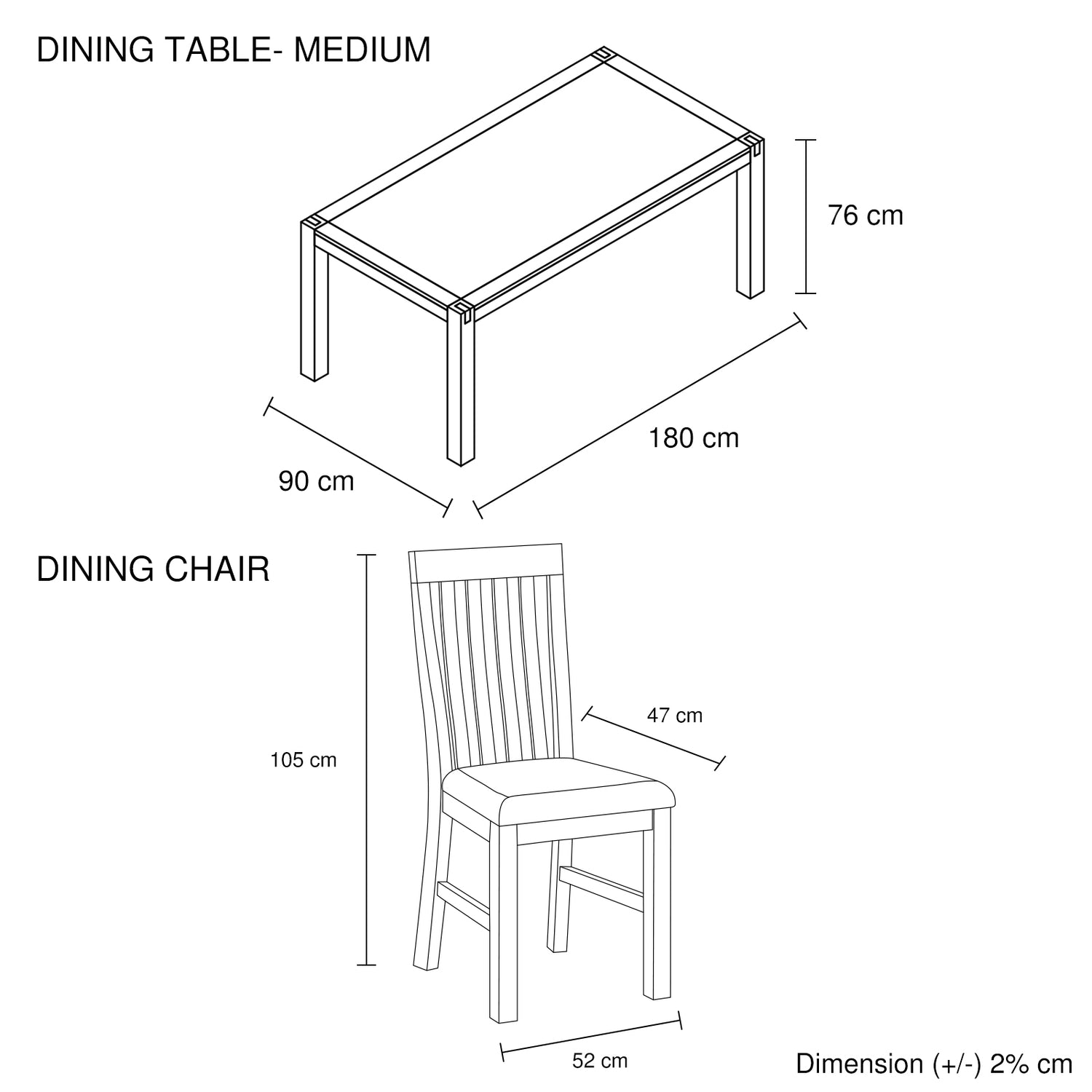 For best fit, allow additional space around the table (at least 90 cm clearance) to ensure chairs can be pulled out with ease. Refer to our Dining Set Size Guide and measure your room before you Buy Dining Set Online to guarantee the perfect fit for your home.