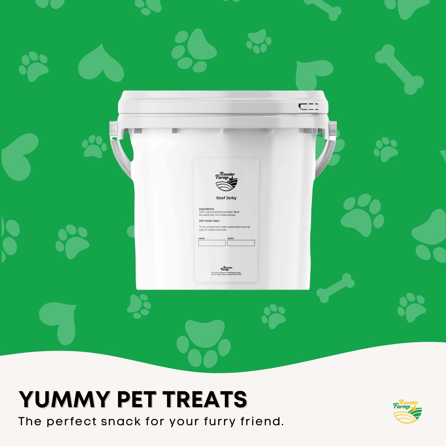- Resealable bucket containing Australian Beef Jerky