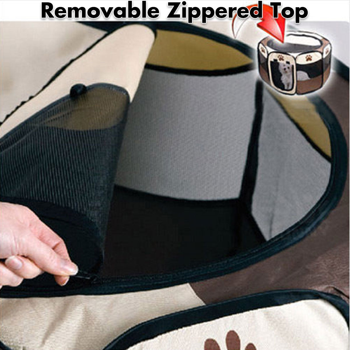 8 Panel Pet Dog Cat Crate Play Pen Bags Kennel Portable Tent Playpen Puppy Cage Medium Brown