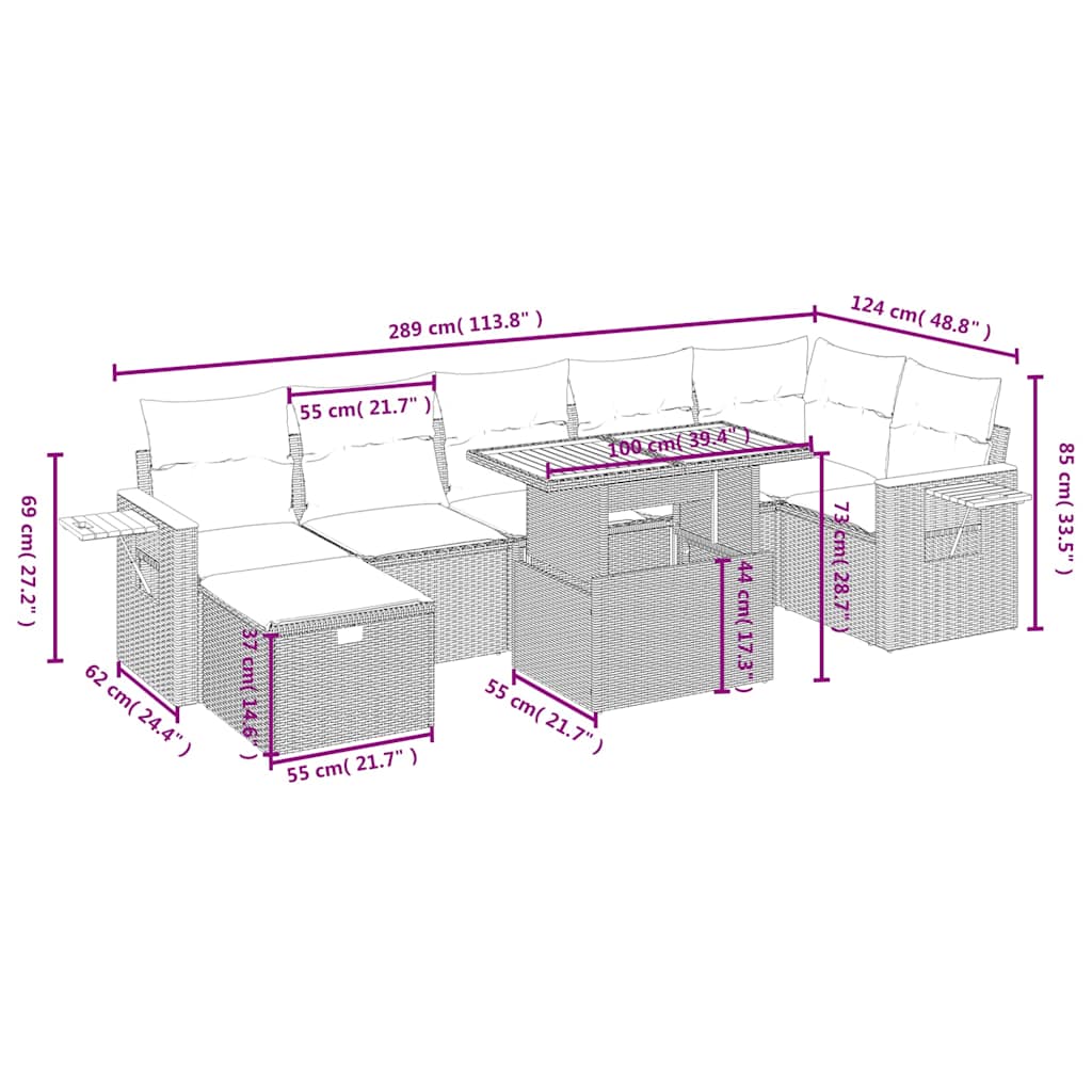 This garden sofa set is the perfect addition to your backyard, terrace, or patio, providing a comfortable and inviting space for chatting with family and friends or simply relaxing and enjoying the outdoors. Durable material: PE rattan, also known as poly rattan, is a strong, low-maintenance synthetic material that looks like natural rattan. It's lightweight, easy to clean, and commonly used for outdoor furniture due to its durability and weather-resistant properties.Adjustable tabletop: The tabletop can be lifted up to make the table higher, which transforms the outdoor table from a coffee table to a dining table. It's perfect for having guests over or eating meals outside.Convenient side table: This outdoor furniture features a foldable side table with a gas spring on the armrests, providing a convenient spot to keep your essentials within easy reach.Removable and washable cover: These seat cushions feature removable covers for easy washing and maintenance.Modular design: This outdoor furniture set has a modular design, making it completely flexible and easy to move around, so you can create a customised outdoor furniture arrangement. Good to know:To make sure your outdoor furniture stays beautiful, we recommend protecting it with a waterproof cover.